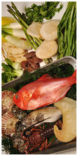 お客様に「馥香」の料理を心ゆくまで味わっていただくために、シェフの高木が料理人として40年以上にわたって培ったプロの確かな目と舌と手で、上質かつ安全な素材だけを選び、おいしさの追求と同レベルで食材の品質管理にも取り組んでいます。